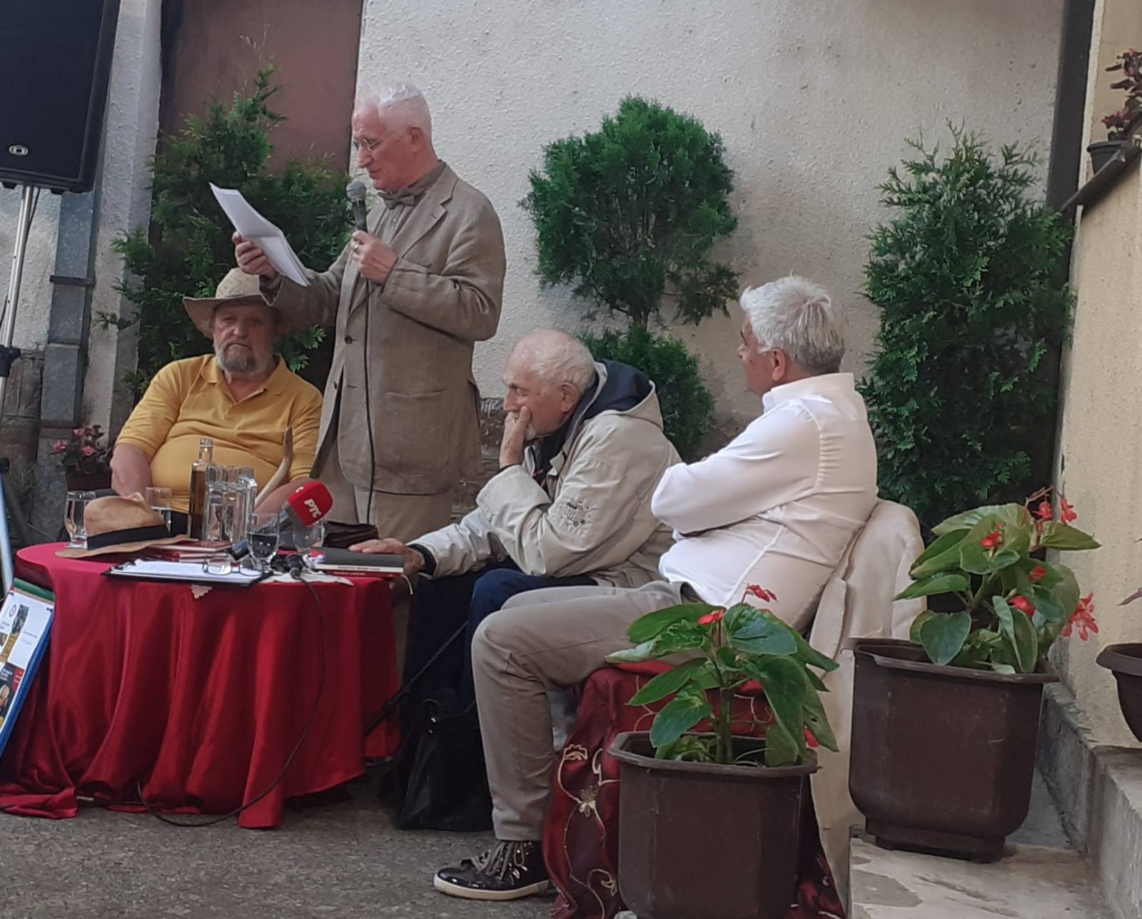 Književno veče je održano povodom nedavno objavljene knjige „Ispovest na trgu“, o kojoj je govorio akademik Matija Bećković, a stihove čitao glumac Petar Božović.