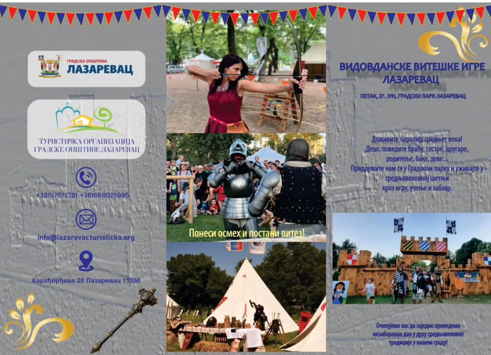 „Vidovdanske viteške igre Lazarevac 2025“ biće održane u petak 27. juna od 9 do 20 časova u Gradskom parku. Uživaćete u srednjovekovnoj šetnji kroz igru, učenje i zabavu. Biće ovo nezaboravan dan u duhu sreednjovekovne tradicije u našem gradu. Zabava za celu porodicu, drveni dvorac i ringišpil, srednjovekovni kamp, radionice, igre za decu, otvorena učionica, prikaz borbi srednjovekovnih ratnika i još mnogo toga.