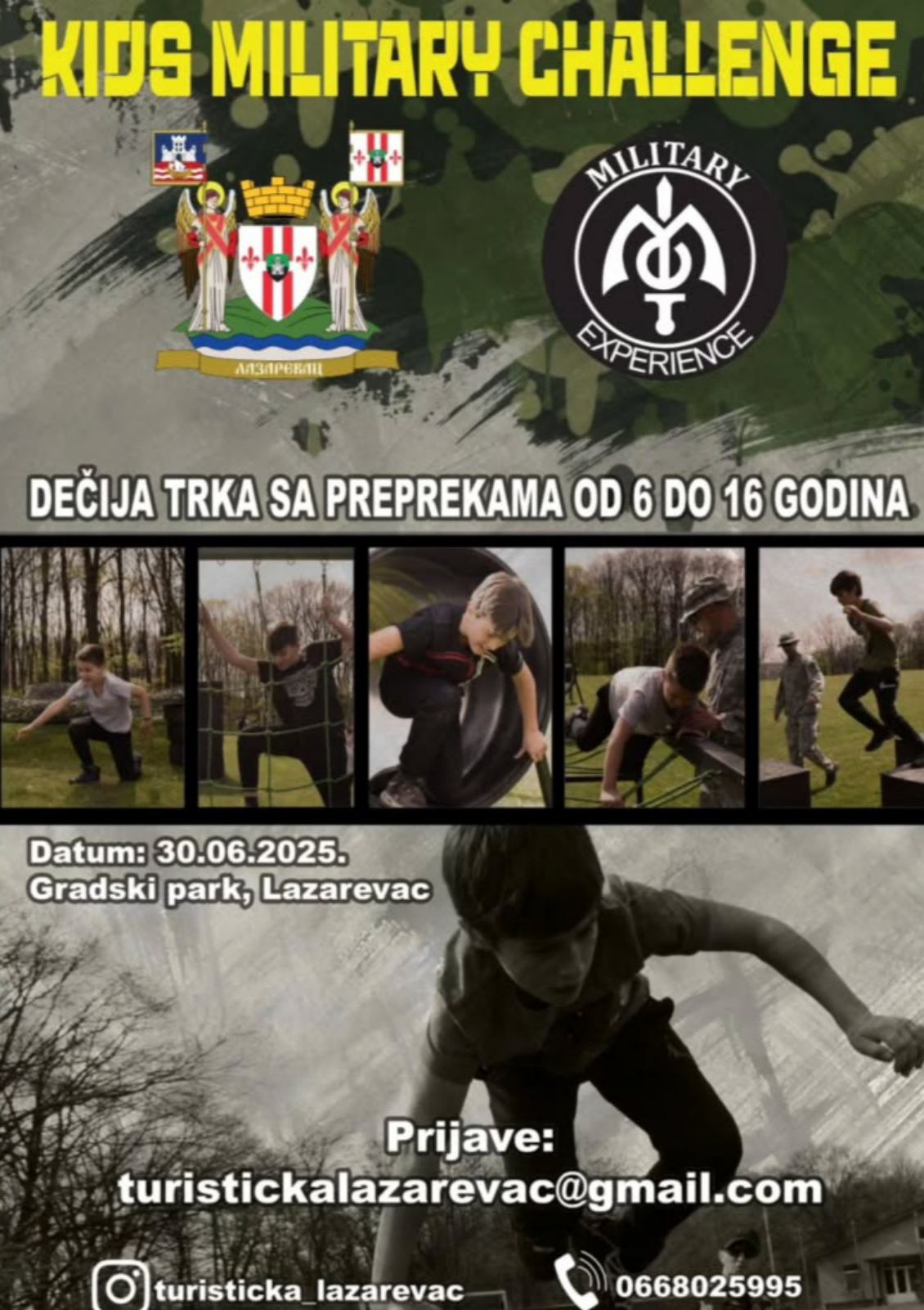 U ponedeljak 30.juna od 12 do 19 časova u Gradskom parku još jedan događđaj posebno interesantan za mališane.„Kids military challenge“- Prikaz borbenih oklopnih vozila Lazar i Miloš i prilika da se i deca oprobaju u, za njih prilagođenim poligonima.