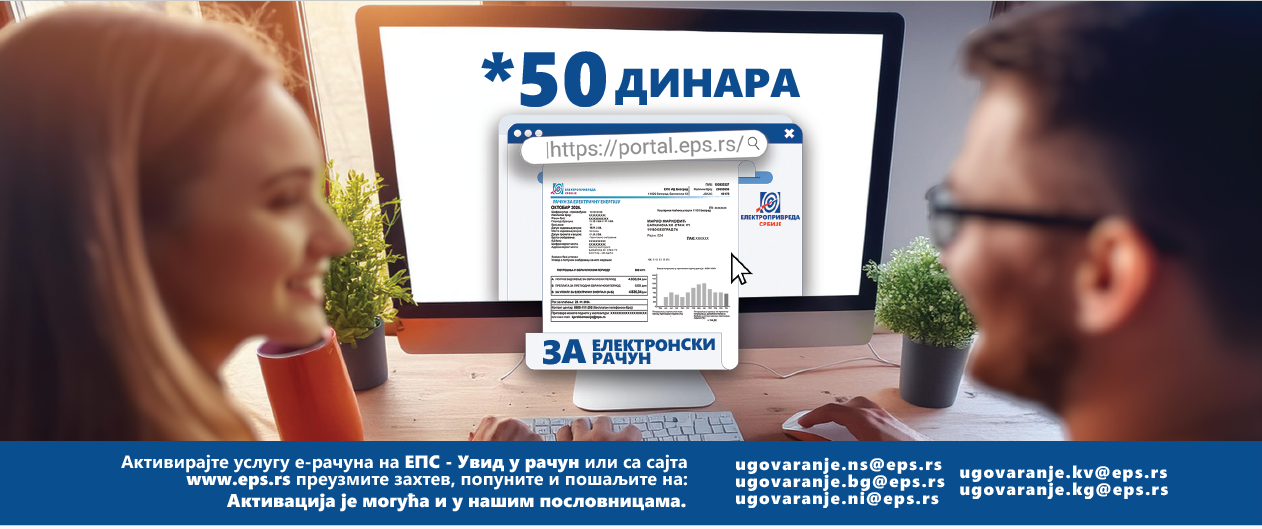 Elektronski račun dostavlja se odmah po formiranju mesečnog zaduženja, pre klasičnog slanja putem pošte. Ova usluga može da se aktivirapreko aplikacije i portala „EPS Uvid u račun“, ili popunjavanjem obrasca https://www.eps.rs/cir/snabdevanje/Pages/elektronski-racun.aspx, kao i lično u poslovnicama- ističu u EPS.