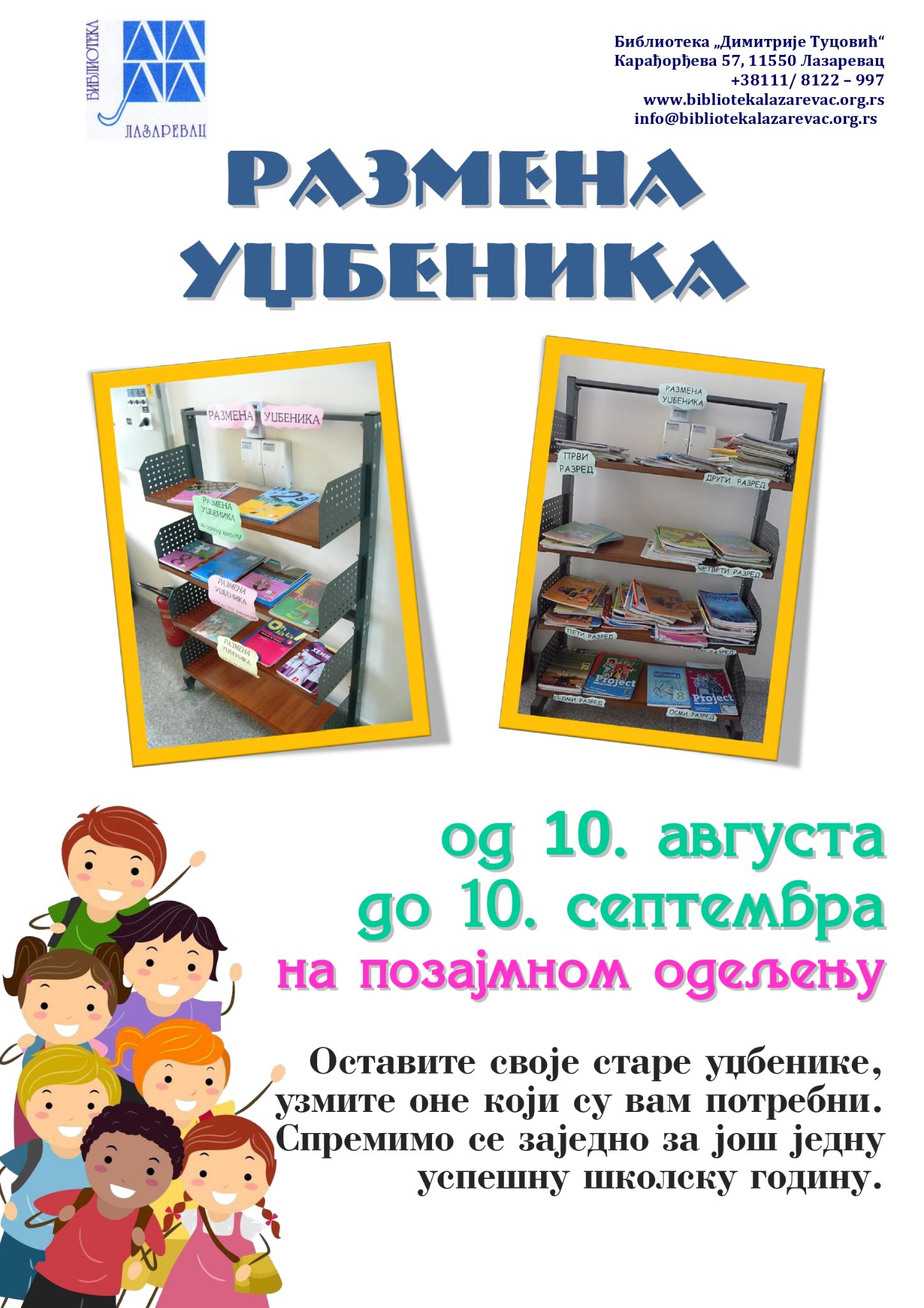 U biblioteci „Dimitrije Tucović“ je počela akcija razmene udžbenika koja će trajati do 10. septembra. Na pozajmnom odeljenju biblioteke, svakim radnim danom od 08.00 do 20.00 časova će se obavljati razmena knjiga.