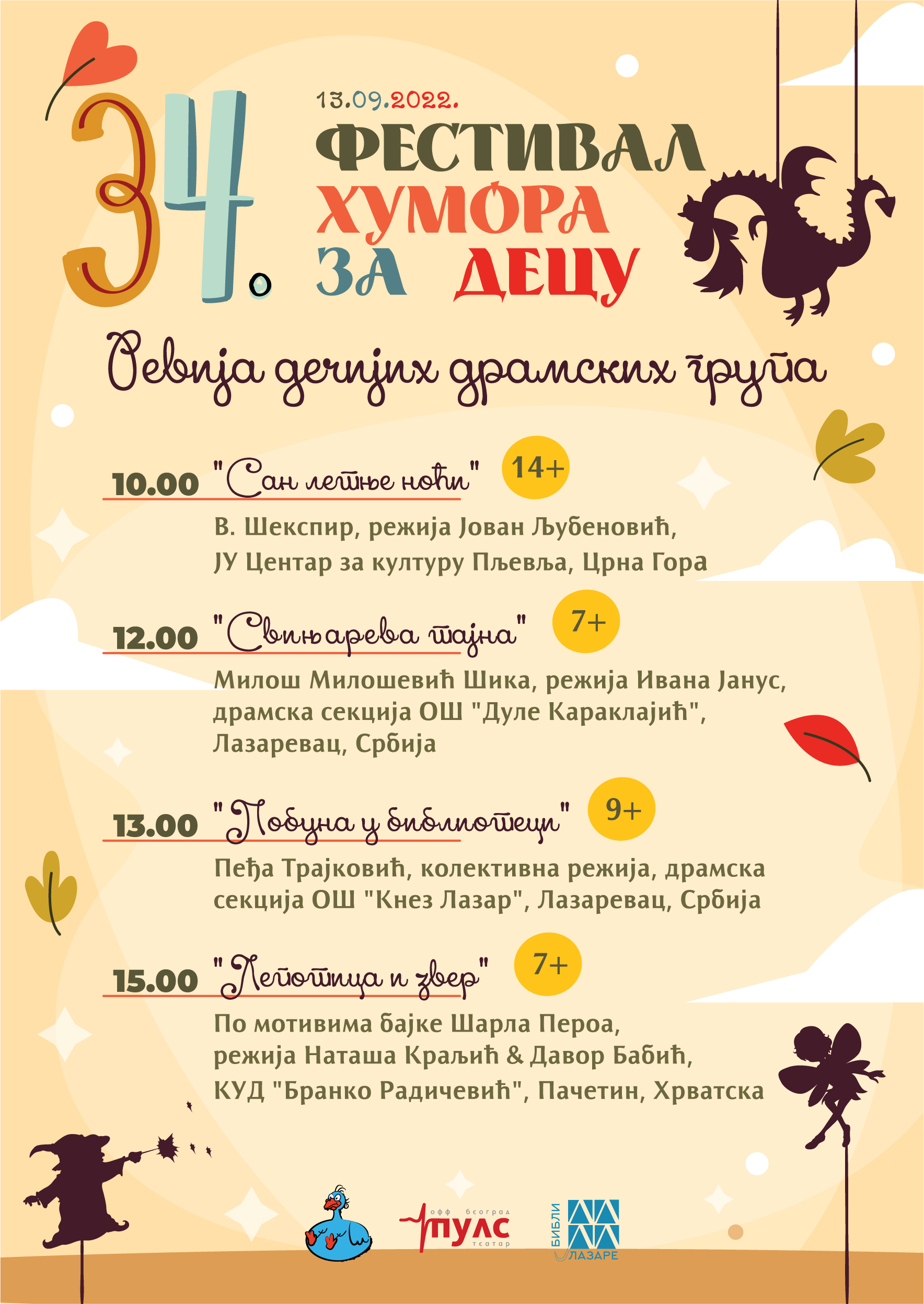 U utorak, 13. septembra , sa početkom u 10 sati u okviru Festivala biće održana i Revija dečijih dramskih grupa.