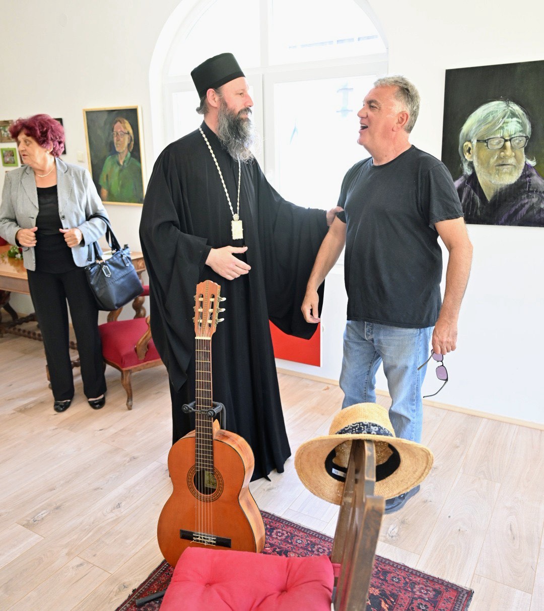 “Duhovnici” su posebno dragocene. Zato mi je čast i zadovoljstvo što sam sa vama, jer patrijarh Porfirije nije mogao doći, sabor i dalje zaseda. Sa tog sabora sam došao na ovo vaše sabranje i radujem se tome. Kako se kaže na jugu Srbije ,neka je “so pesmom“. Nek bude sa pesmom, u dobrom raspoloženju, sa dobrom verom. Čini mi se da, kao i Velja, treba sa hrišćanskim opredeljenjem da usmeravamo svoje živote. Bez obzira što ima mnogo toga lošeg što čovek može da zapaža, ipak treba svi da se opredelimo da dobro pobeđuje, a takva vrsta životnog opredeljenja i stava osećala se u Veljinom stvaralaštvu. A kao da je dodir tog nekog duha i sa ovim mestom, tako da neka se Velja raduje u carstvu nebeskom, a mi da se radujemo susretu ponovnom”.