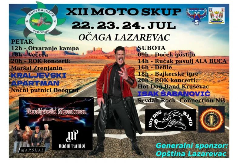 Skup počinje danas i traje do 24. jula, a mesto održavanja je jezero Očaga u Lazarevcu. Posetioce očekuje je i bogat muzički program koji garantuje nezaboravno druženje. Ulaz i hrana za motocikliste su gratis, a tu je i poklon iznenađenja, dok posetioci zainteresovani za druženje sa bajkerima i prisustvo rok koncertu ulaz plaćaju.